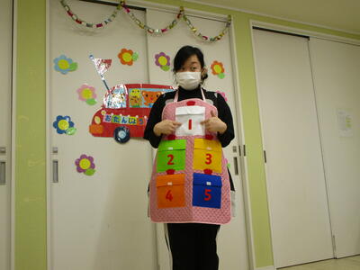 お名前を呼ばれると上手にお返事ができ、「なんさいになりましたか?」
