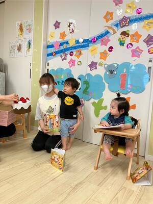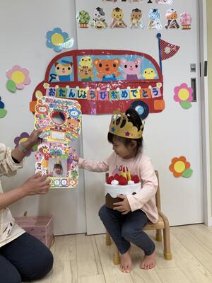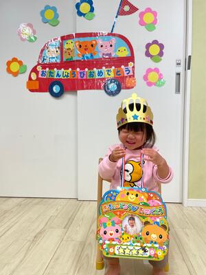 今月のお友達は初めてのお誕生日を迎えます✨お誕生日カードや歌のプレゼントをもらい、とても嬉しそう!