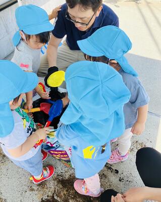 今日はとても外は気温が上がってピカピカいい天気☀️外の気温に負けないくらい子ども達は元気いっぱい!笑顔がピカピカ✨輝いています☺️