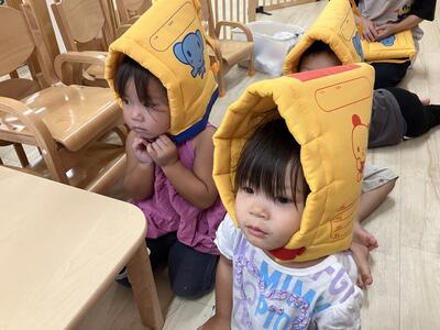 頭を守る姿勢をとれる子や