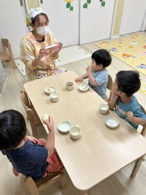 普段の避難訓練と同じように、すぐに保育士の傍に集まり